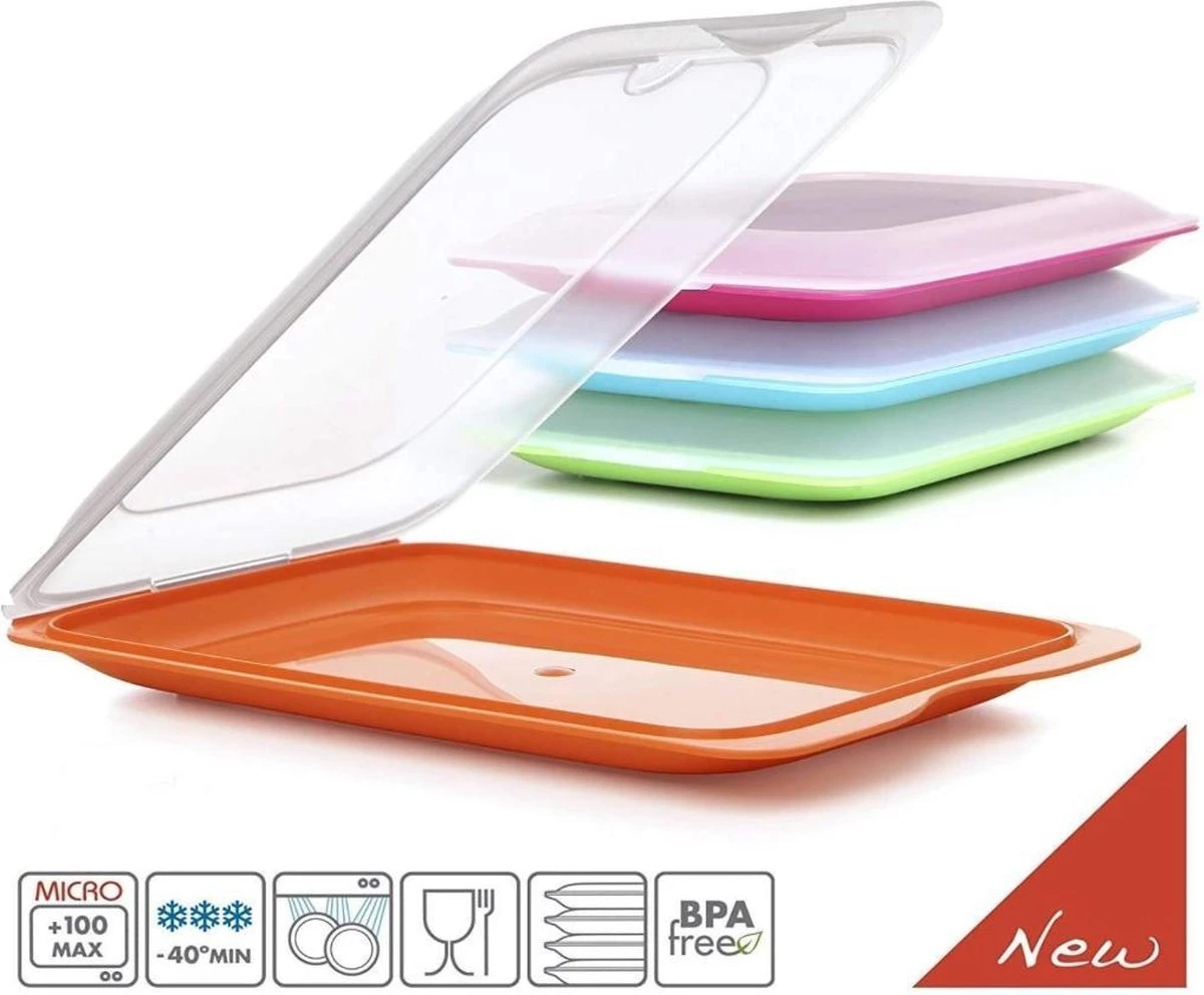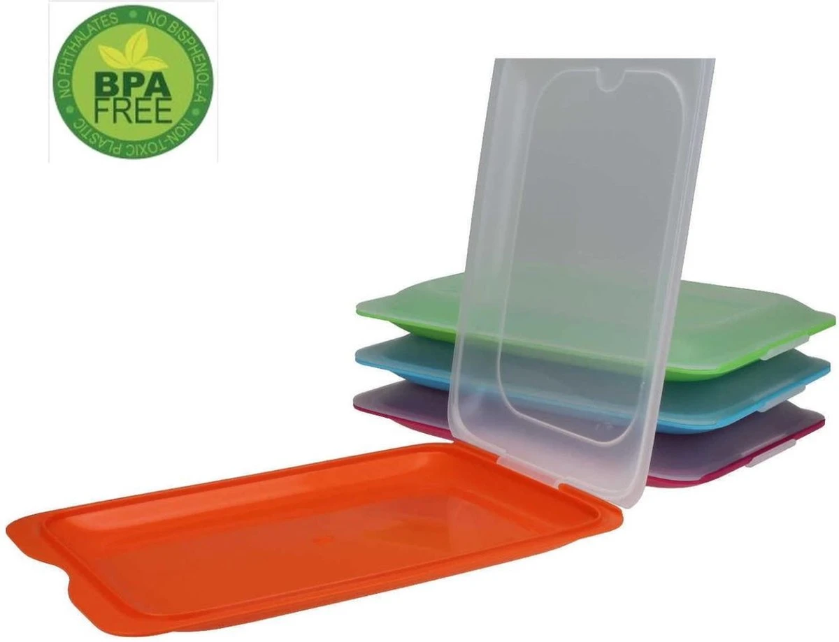 Optimale bewaring in de koelkast voor worst, kaas en worst. Ruimtebesparend stapelbaar Veilig sluitsysteem met afneembaar deksel. Geschikt voor plakjes ham, etc. Afmetingen 17 x 3,2 x 25,2 cm Ze zijn vaatwasmachinebestendig, magnetron en vriezer (van -40 ° C tot 100 ° C) Het Fresh-systeem houdt het voedsel in een luchtvochtigheid die geschikt is voor een lange houdbaarheid voor koude vleeswaren met geïntegreerde serveerschaal. BPA-vrij plastic van topkwaliteit, gemaakt in de EU