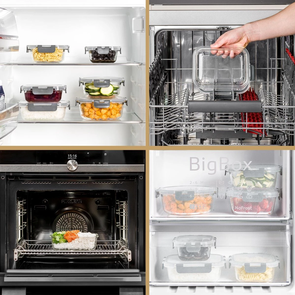 ▶ Geschikt voor: vriezer, koelkast, oven en magnetron