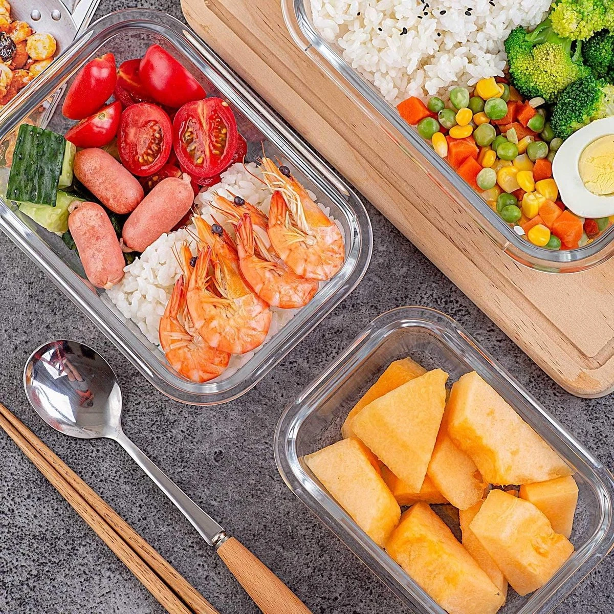 - Transport tijdens reizen: Onze glazen bakjes zijn draagbaar, op kantoor, op school, op reis, picknick, camping,..